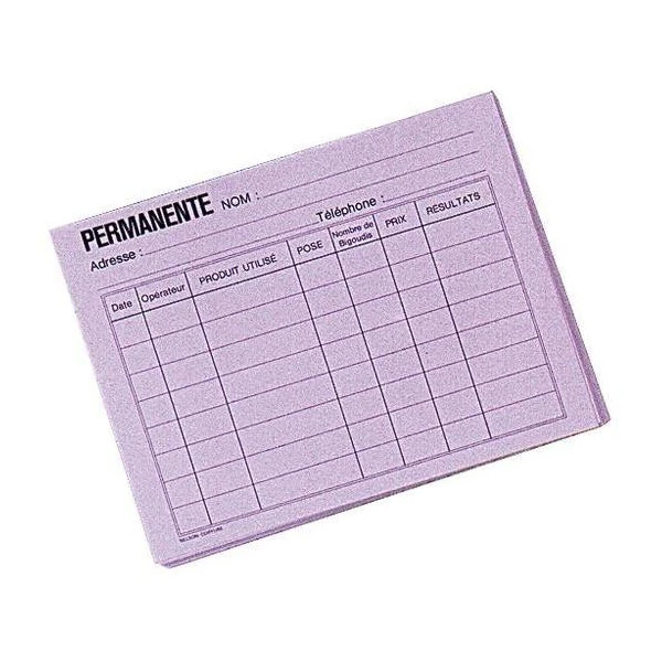 Paquet de 50 fiches coloration et permanentes de couleur Rose, pour suivre les travaux techniques réalisés sur vos clients.