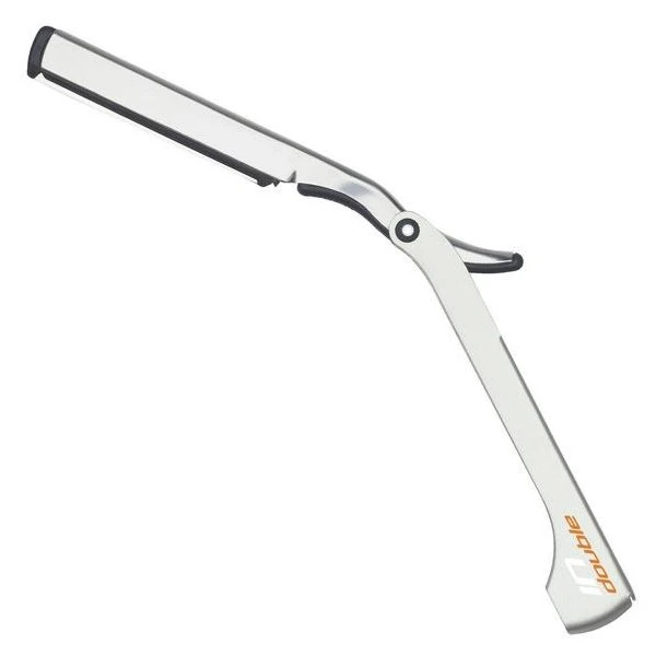 Rasoir livré avec une lame et un porte lames à dents pour l’effilage.