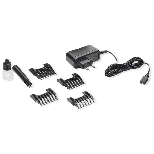 Tête de coupe entièrement métallique en acier inoxydable, professionnelle, avec réglage intégré de la longueur de coupe de 0,7 à 3. Coupe performante grâce à la technologie d’affûtage ultra précise « Made in Germany ». Bénéficiez de 4 contre-peignes de 3,6,9,12, adaptateur secteur à haute efficacité énergétique, brosse de nettoyage et huile. Fonctionnement sur batterie ou sur secteur, autonomie jusqu’à 90 minutes !